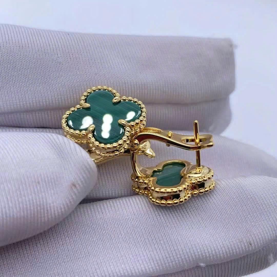 Bông tai VCA đá xanh lá 15mm vàng vàng