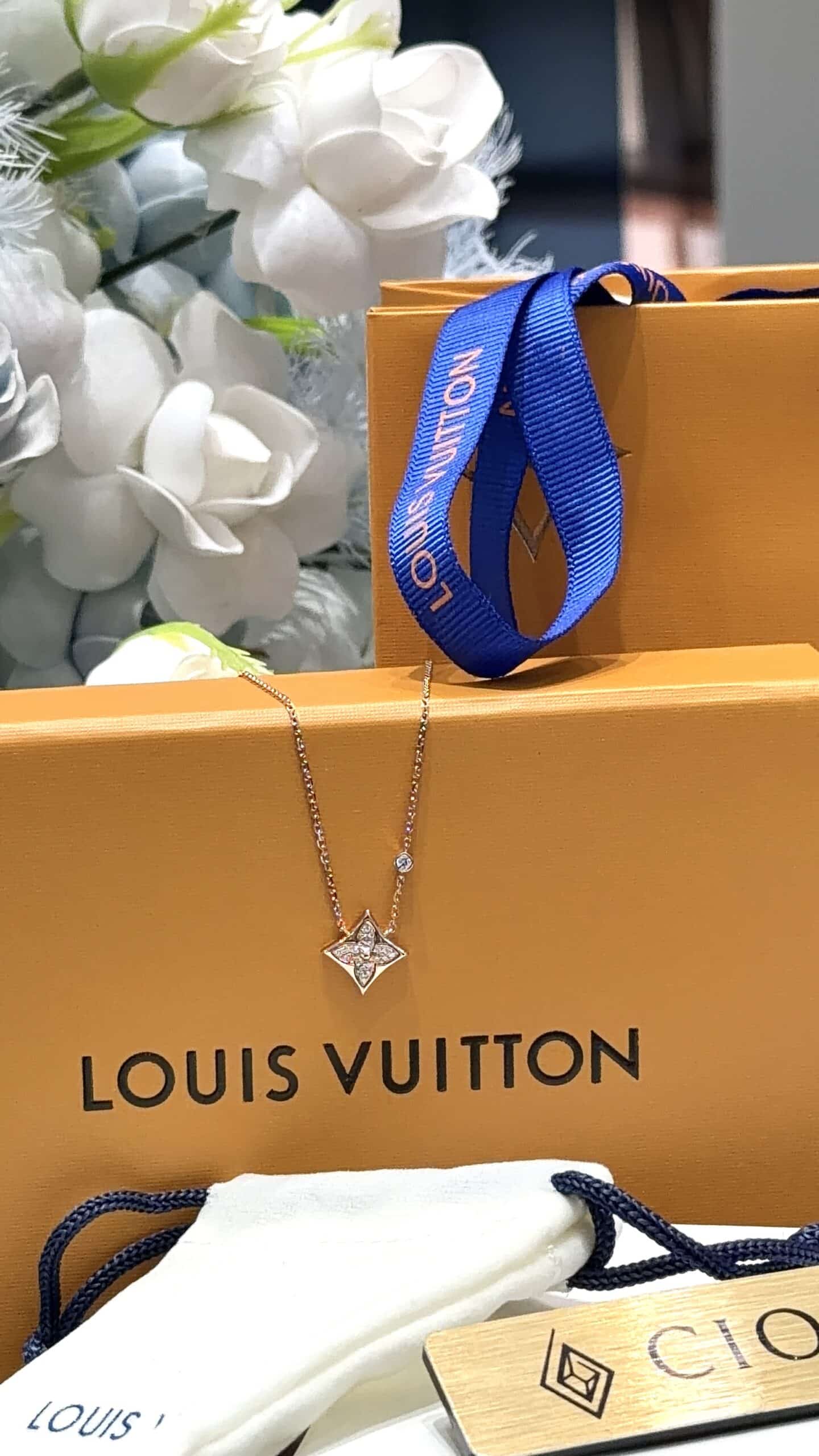 Dây Chuyền LV Vàng Hồng Full Kim Cương