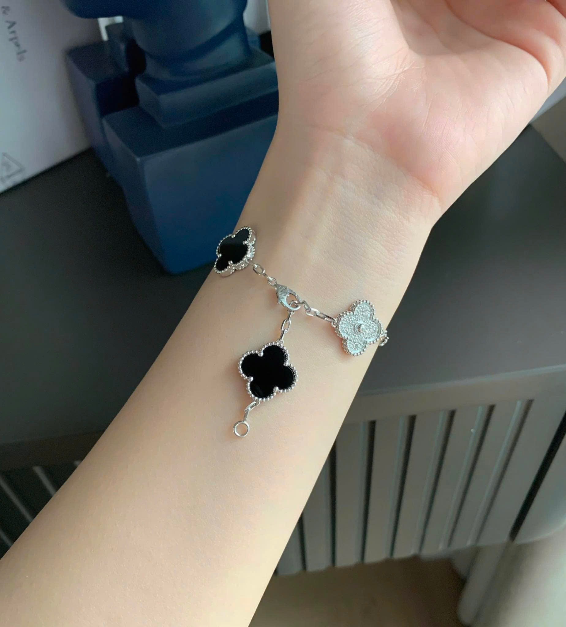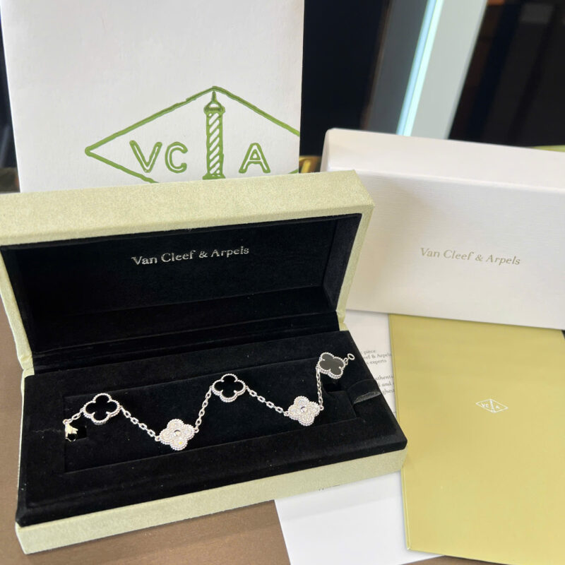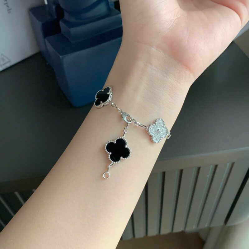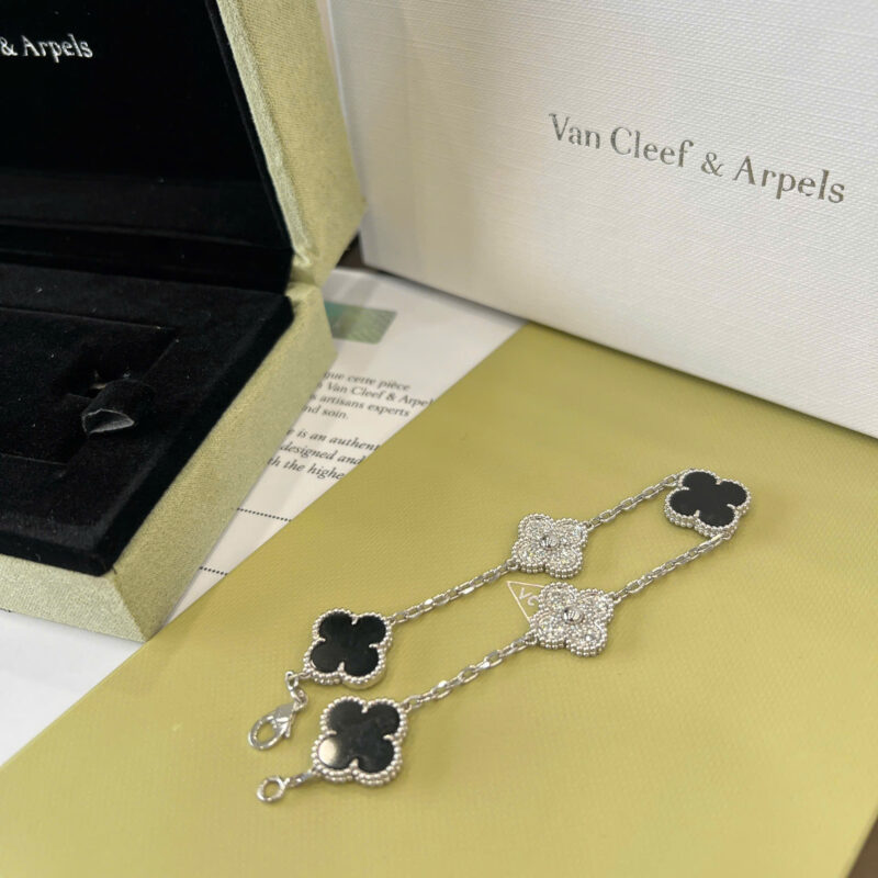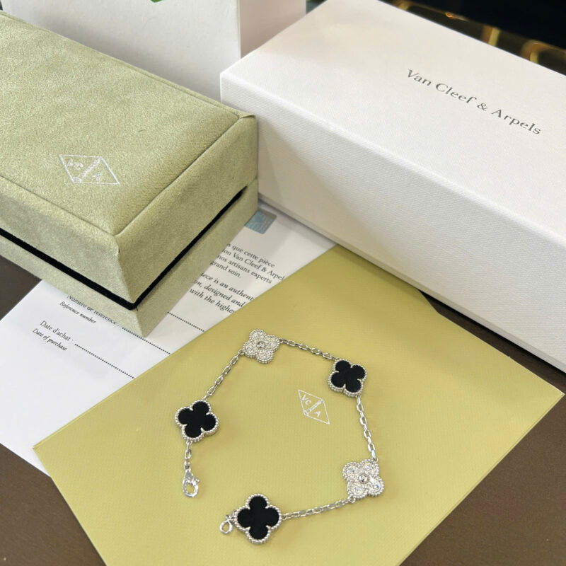 Lắc tay Van Cleef đen + kim cương thiên nhiên 15mm