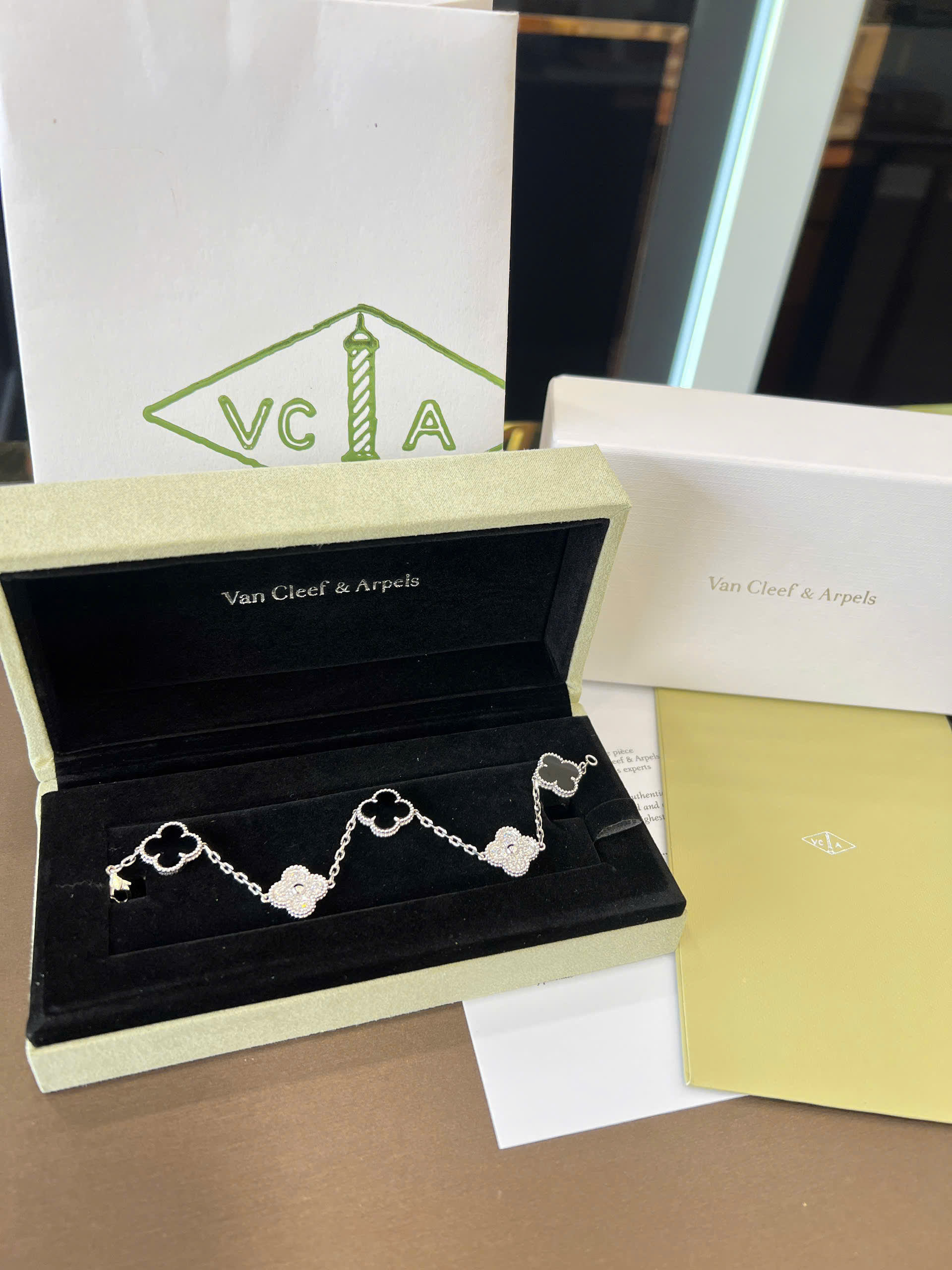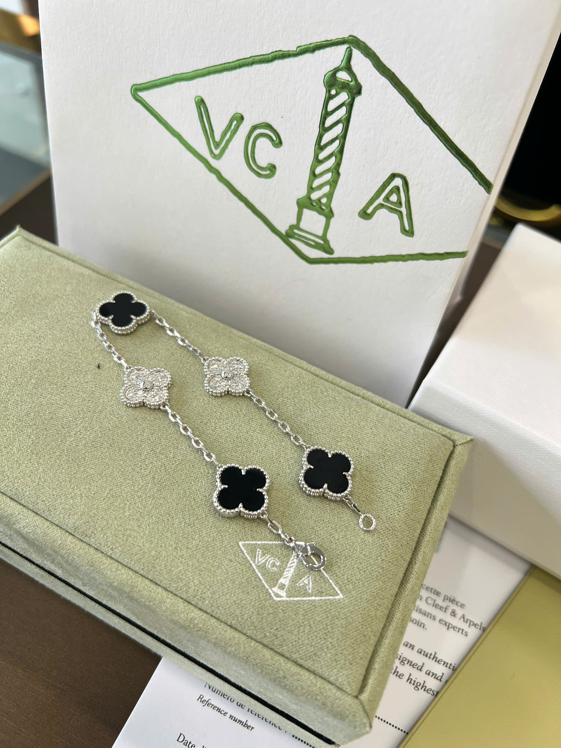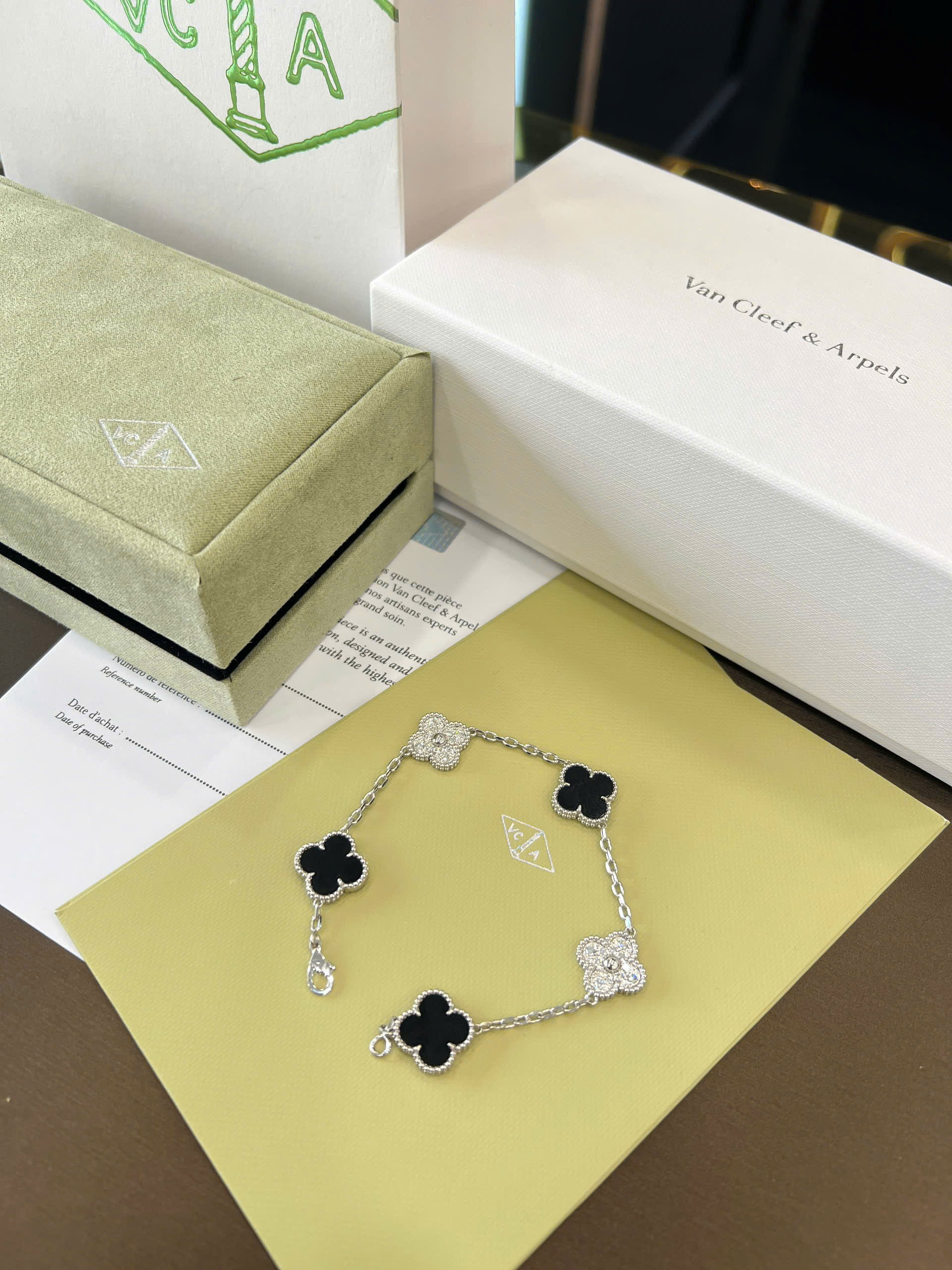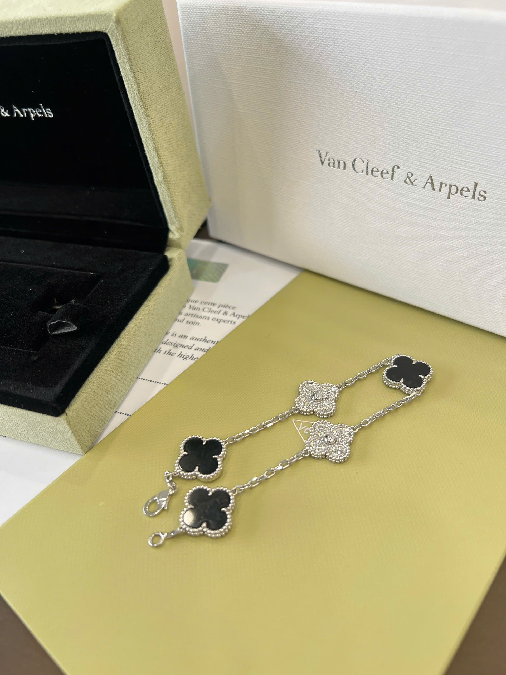 Lắc tay Van Cleef đen + kim cương thiên nhiên 15mm